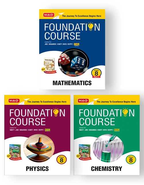 MTG Foundation Course combo of 3 books for Physics, Chemistry & Mathematics is designed to provide a competitive edge to students. Foundation books are based upon the latest Competency-Based Education that not only gives base-level learning but also prepares students for competitive exams like JEE / BOARDS / CUET / NVS / KVPY / IMO. The foundation course helps students gain knowledge, understand concepts and improve exam skills with unique facts, extra information, and practice papers based on the latest patterns of CBSE, CUET & JEE exams.
