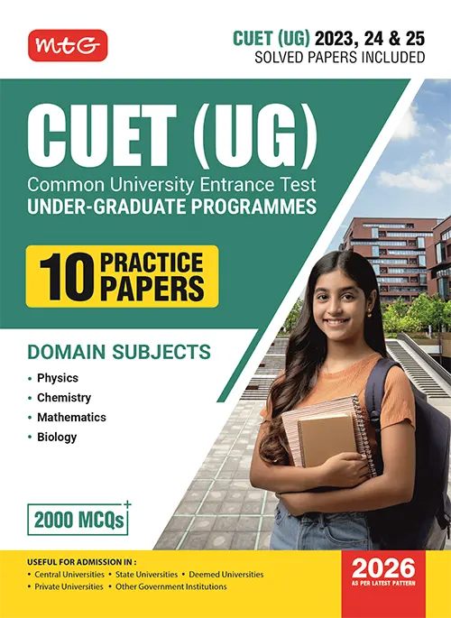 MTG’s CUET UG 10 Practice Papers will ensure that you get admission to your dream college. It will help science students in Physics, Chemistry, Mathematics, and Biology subject of Section II Domain Science of CUET 2026. It is based on the latest exam pattern of CUET 2026 and covers all question typologies to help you better understand the background and recent pattern of questions in CUET 2026.