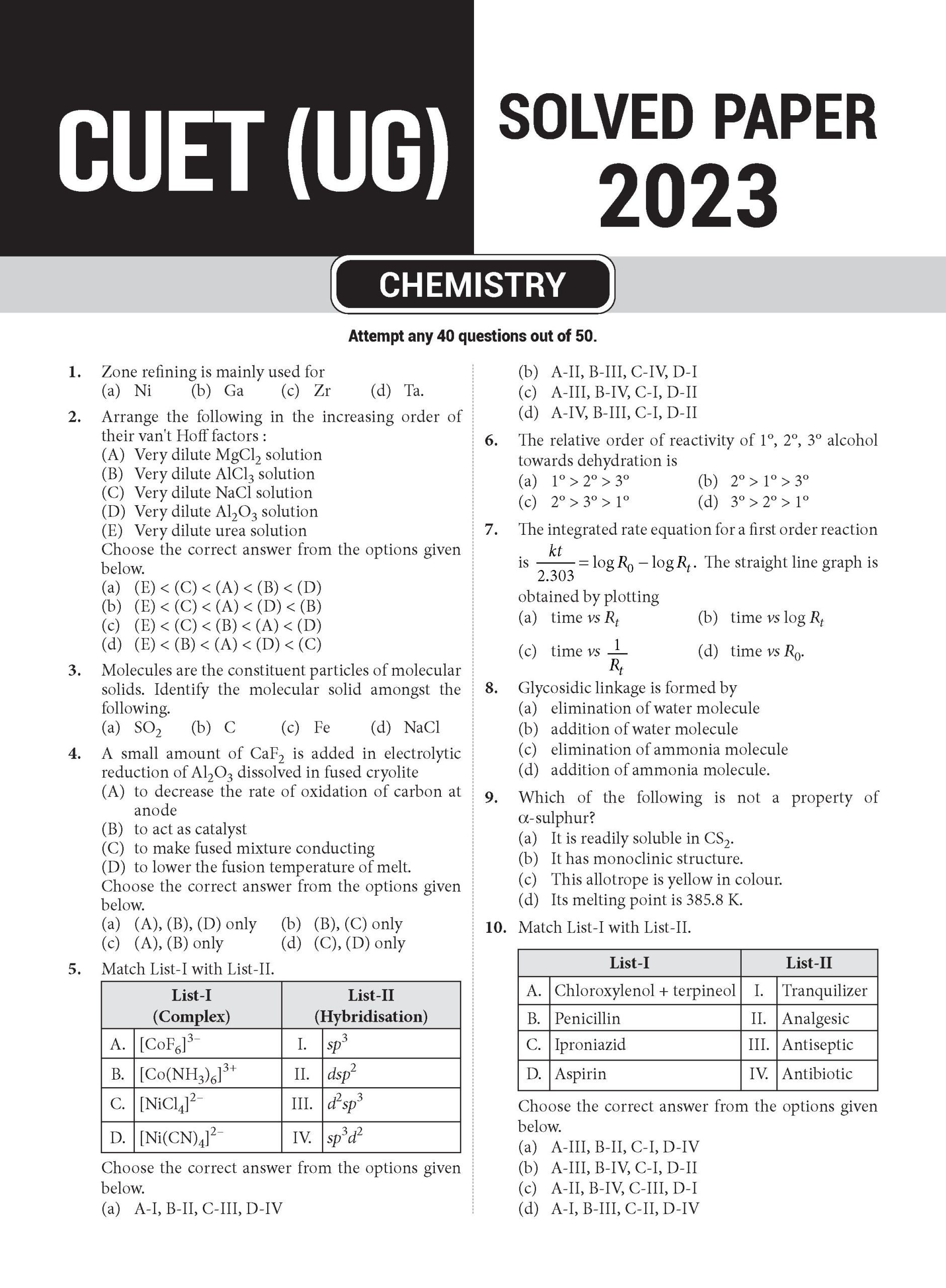 - Fully solved 2025, 2024 and 2023 CUET papers to familiarize with the exam pattern.