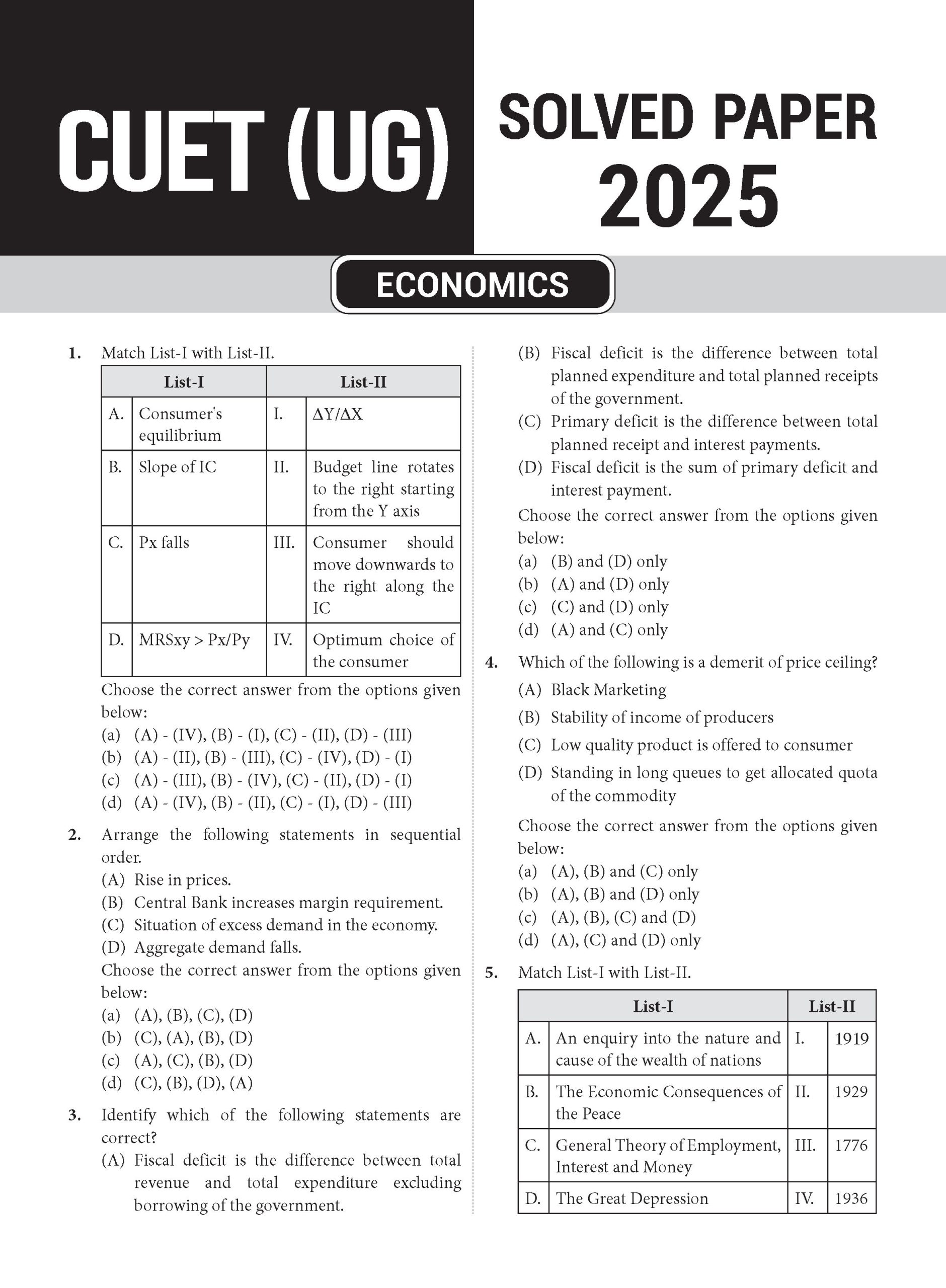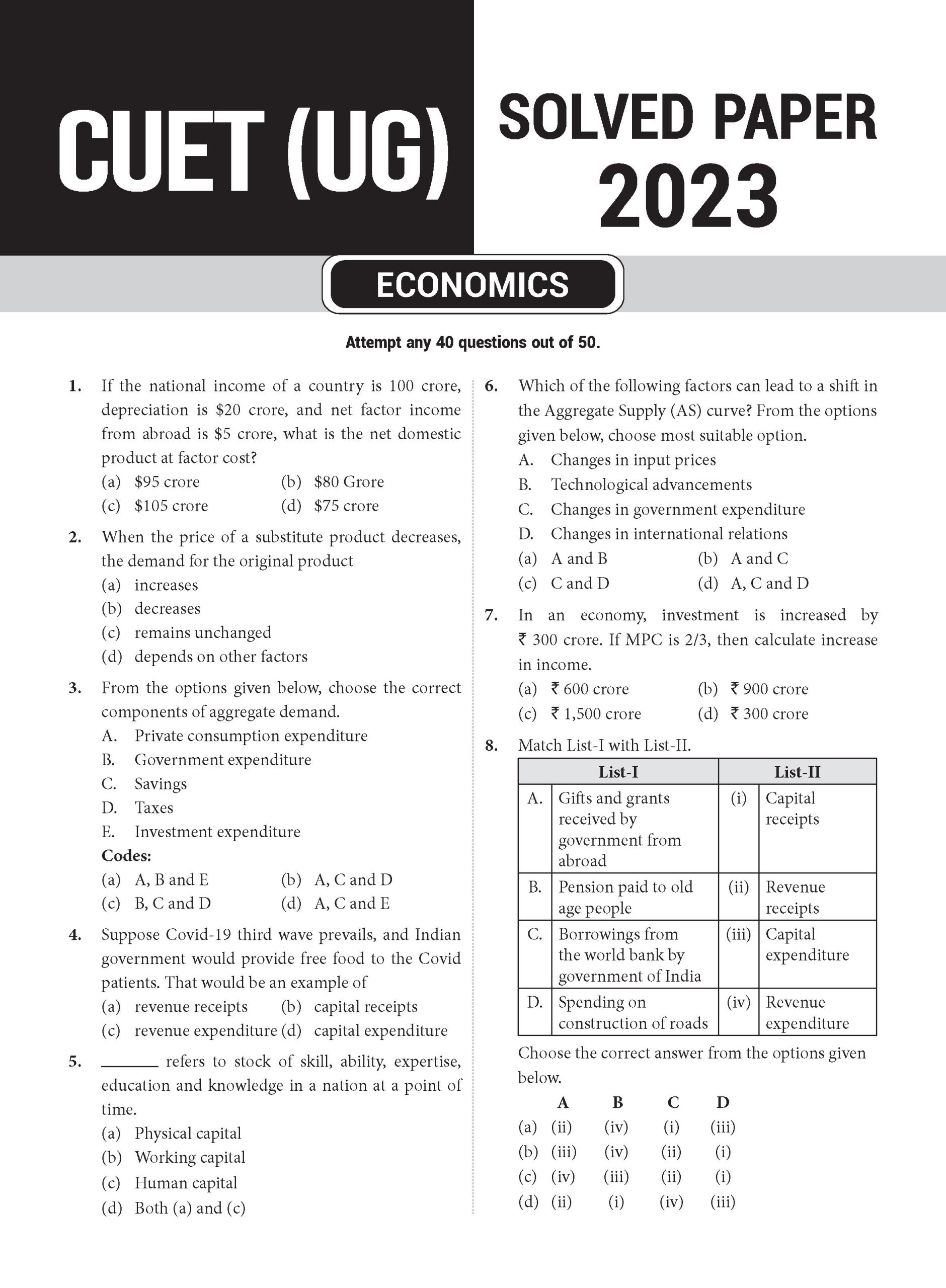 - Fully solved 2025, 2024 and 2023 CUET papers to familiarize with the exam pattern.