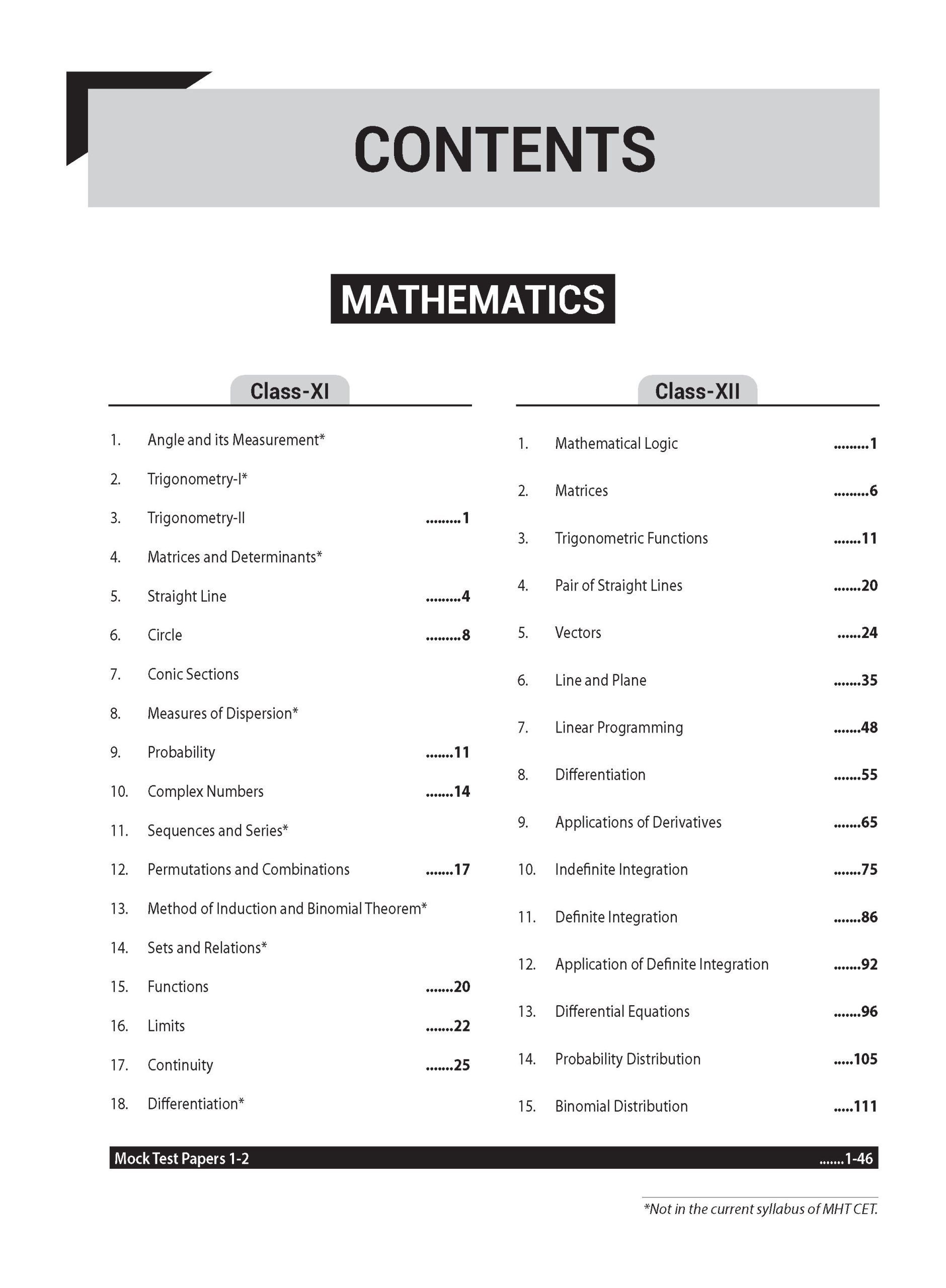 Mock Test Papers 1-2 *Not in the current syllabus of MHT CET.
