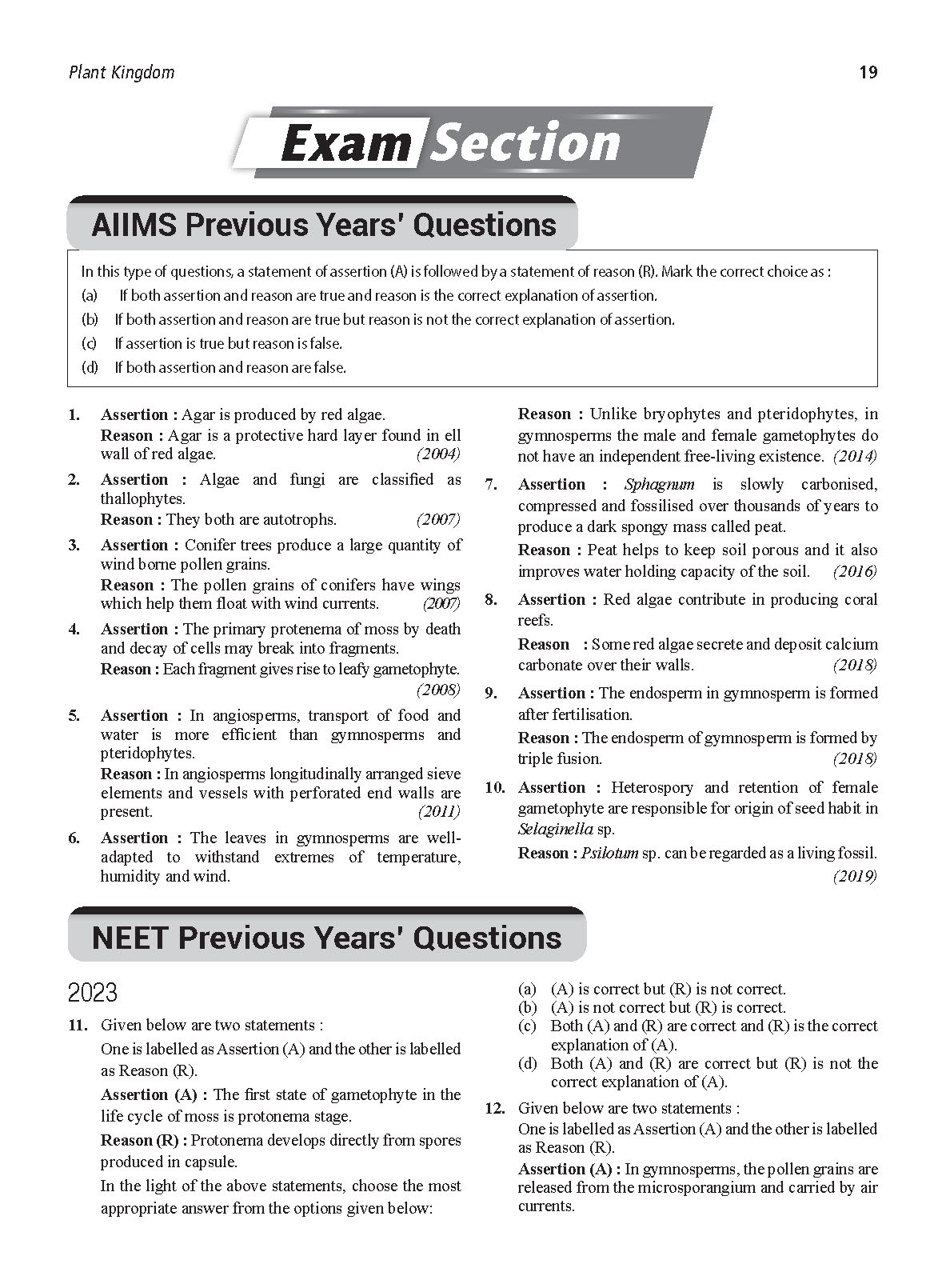 - Contains previous 19 years (2001-2019) of AIIMS Assertion and Reason questions.