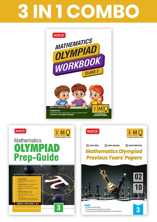 MTG 3-in-1 Mathematics Olympiad combo of 3 books – Olympiad Workbook, Olympiad Prep-Guide, and Olympiad Previous Years’ Papers is perfect for students preparing for the SOF IMO 2026-27 exam. This combo will provide multi-dimensional preparation and sharpen the Mathematical skills of students to ace SOF IMO with ease.