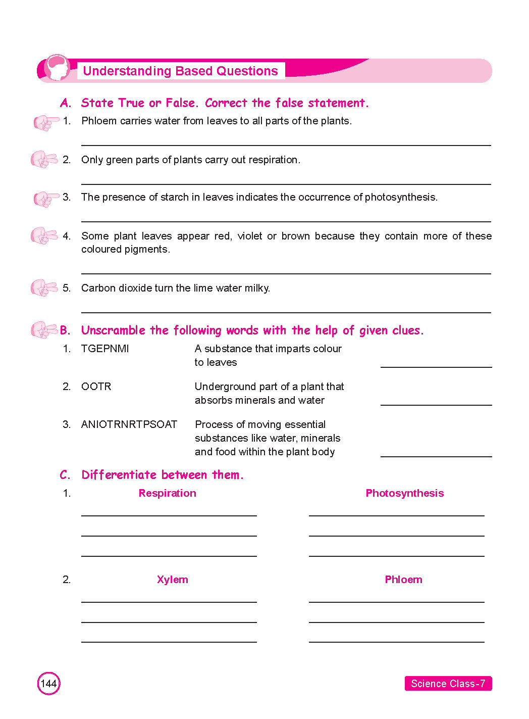 • Understanding-based questions – These comprise circle the odd one, true-false, questions & answers, etc., for learners to check their ability to classify, compare, explain and interpret the concepts learned.