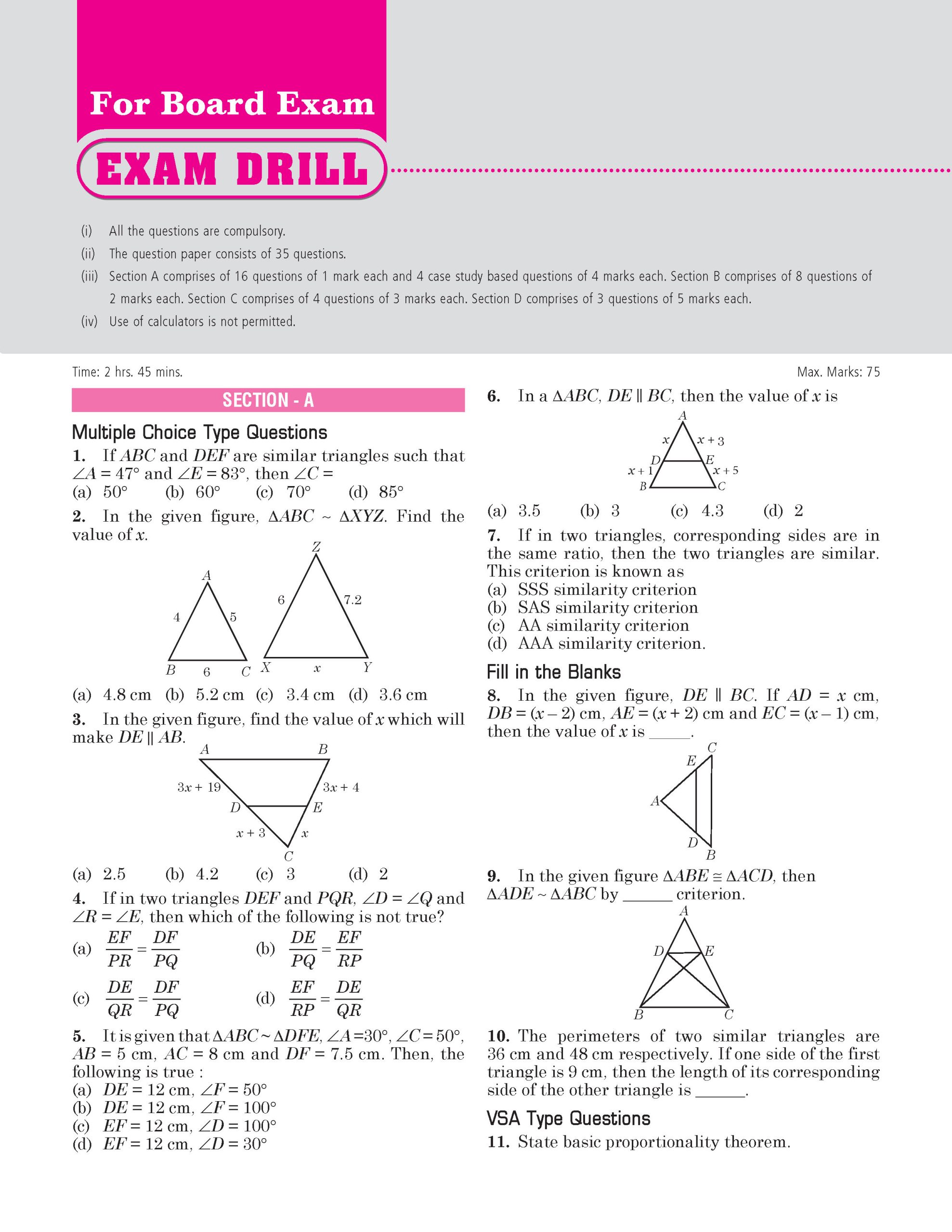 - Chapter-wise “Exam Drill” based on the latest CBSE pattern at the end of each chapter.