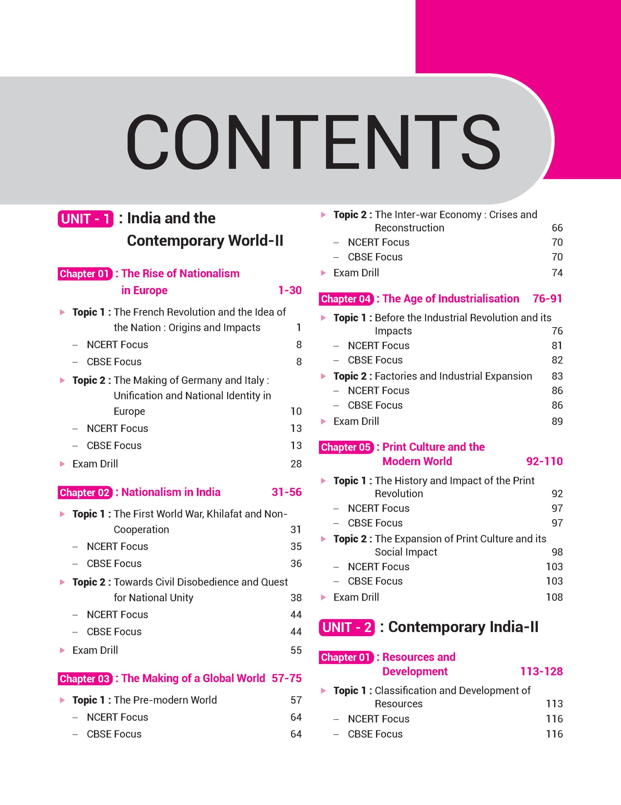 - Chapter-wise “Exam Drill” based on the latest CBSE pattern at the end of each chapter.