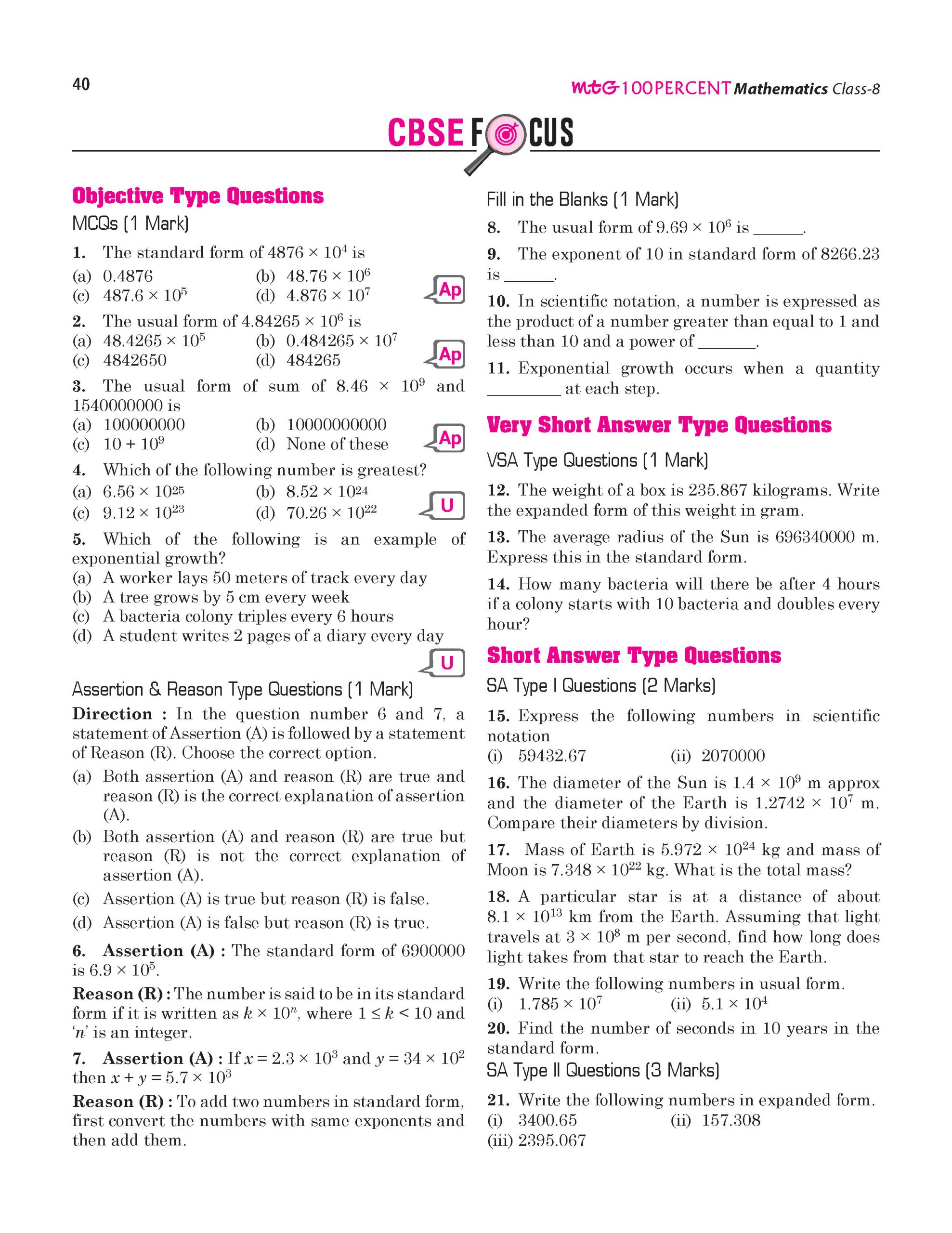 • Chapter-wise “Exam Drill” based on the latest CBSE pattern at the end of each chapter.