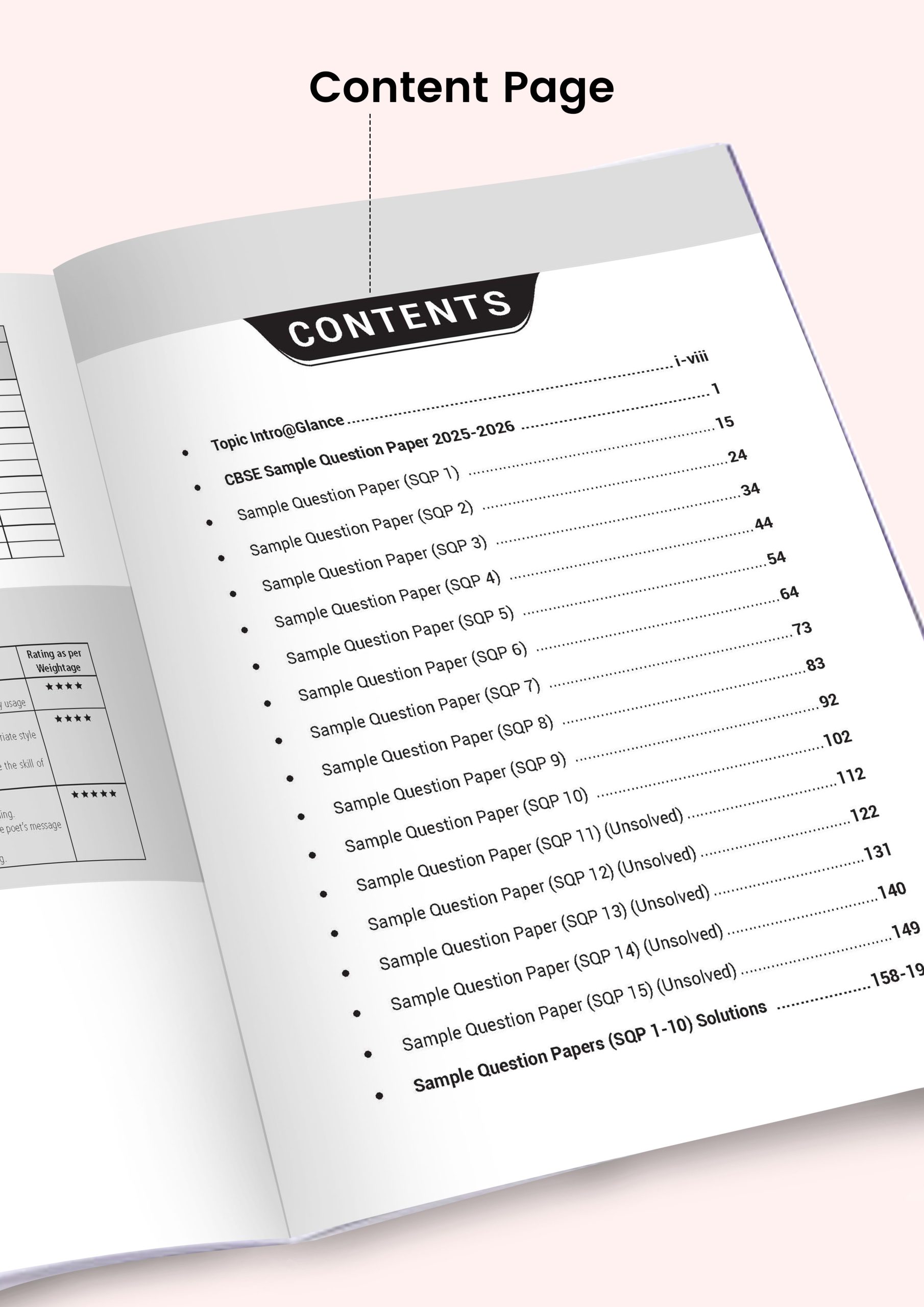 MTG brought to you CBSE ScoreMore 15 Sample Papers for Class 10. It includes all types of question typologies on the current syllabus and pattern to help you practice more and score more in the CBSE Board exams in 2026. All sample papers include all question typologies, 15 SQPs based on the latest Sample Papers issued by CBSE on 30th July 2025. Solutions of all SQPs as per the CBSE Marking Scheme. Solved CBSE Official Sample Paper included new features like CBSE Score Predictor, Tips to Score More, etc.