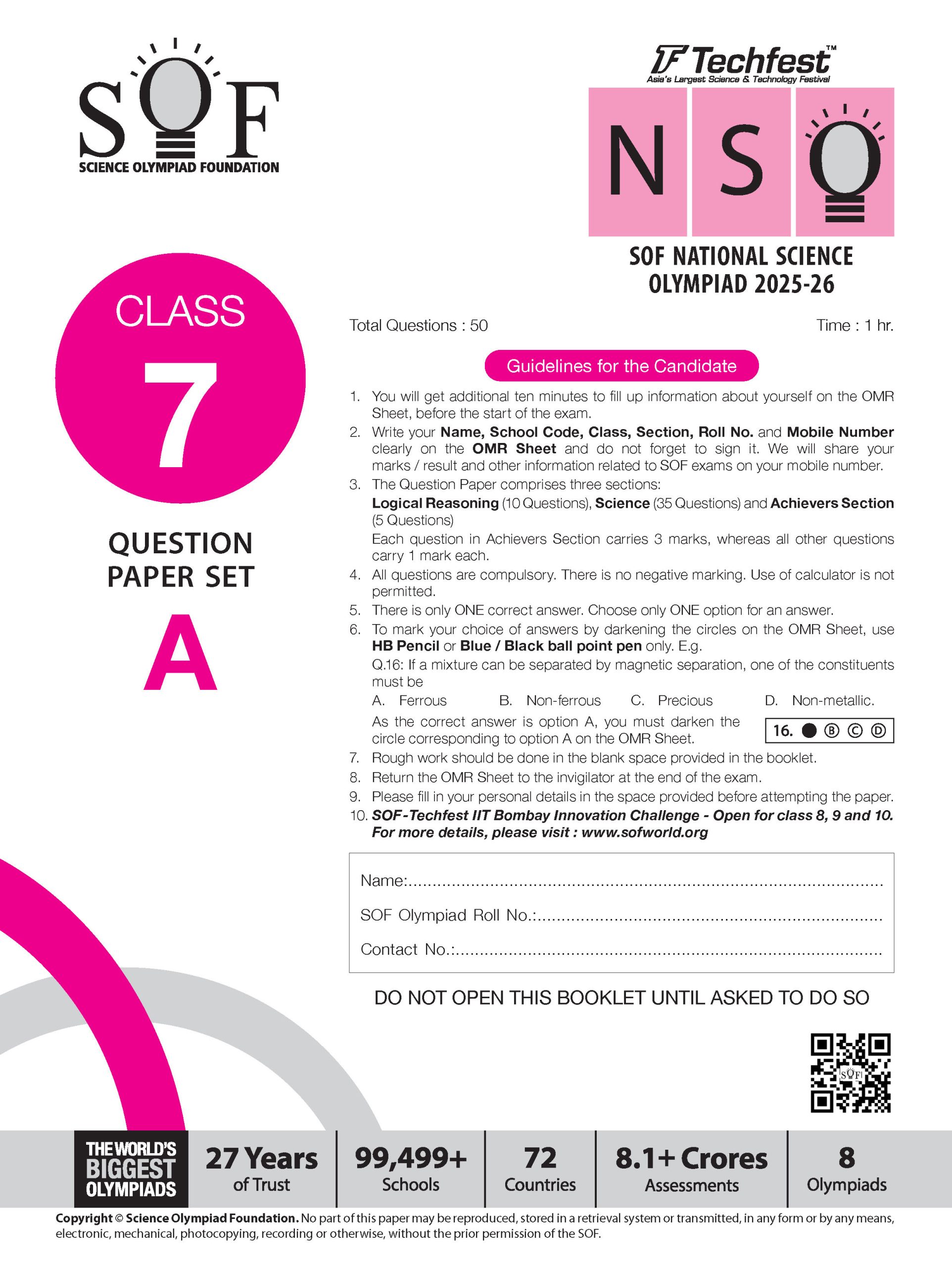- NSO questions for Physics are also included at the end of the book.